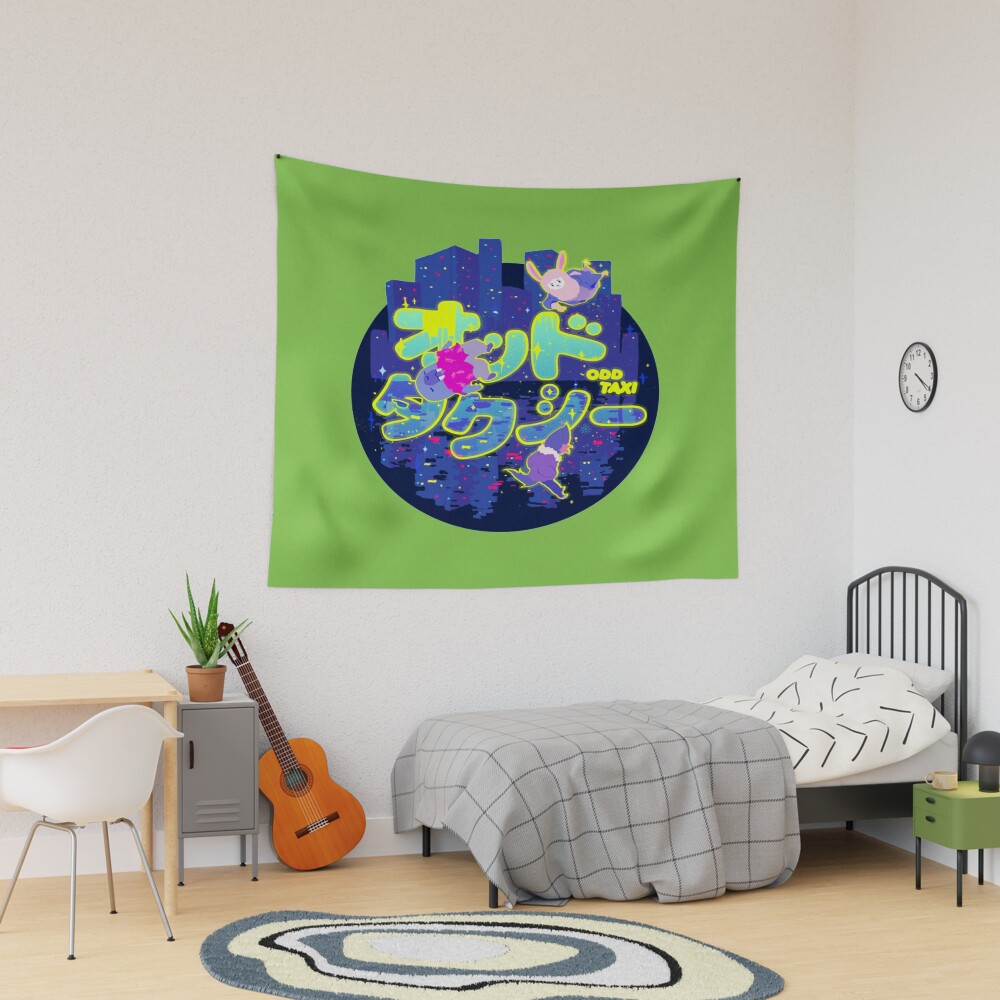 Odd Taxi Tokyo Neon Street Scene Tapestry